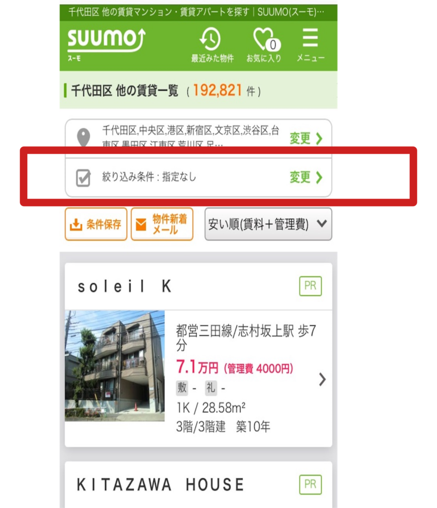 ですがこのまま賃貸物件を探していては木造を回避できません。絞り込み条件をクリックすると、いろいろな条件で物件を絞り込めます。